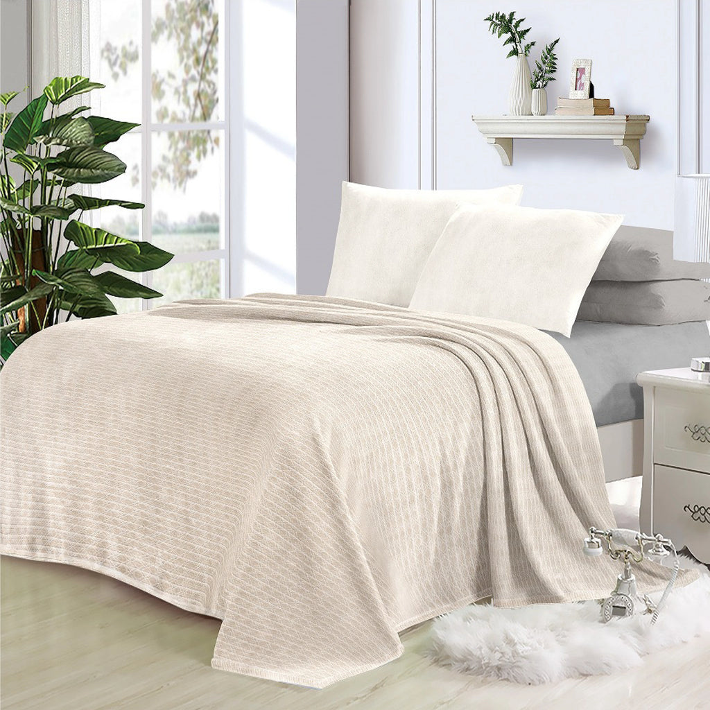 Its minimal texture and soothing color palette make it a perfect addition to modern and classic bedrooms alike. Whether used daily or gifted on special occasions, the Tasva Blanket delivers both style and comfort effortlessly.